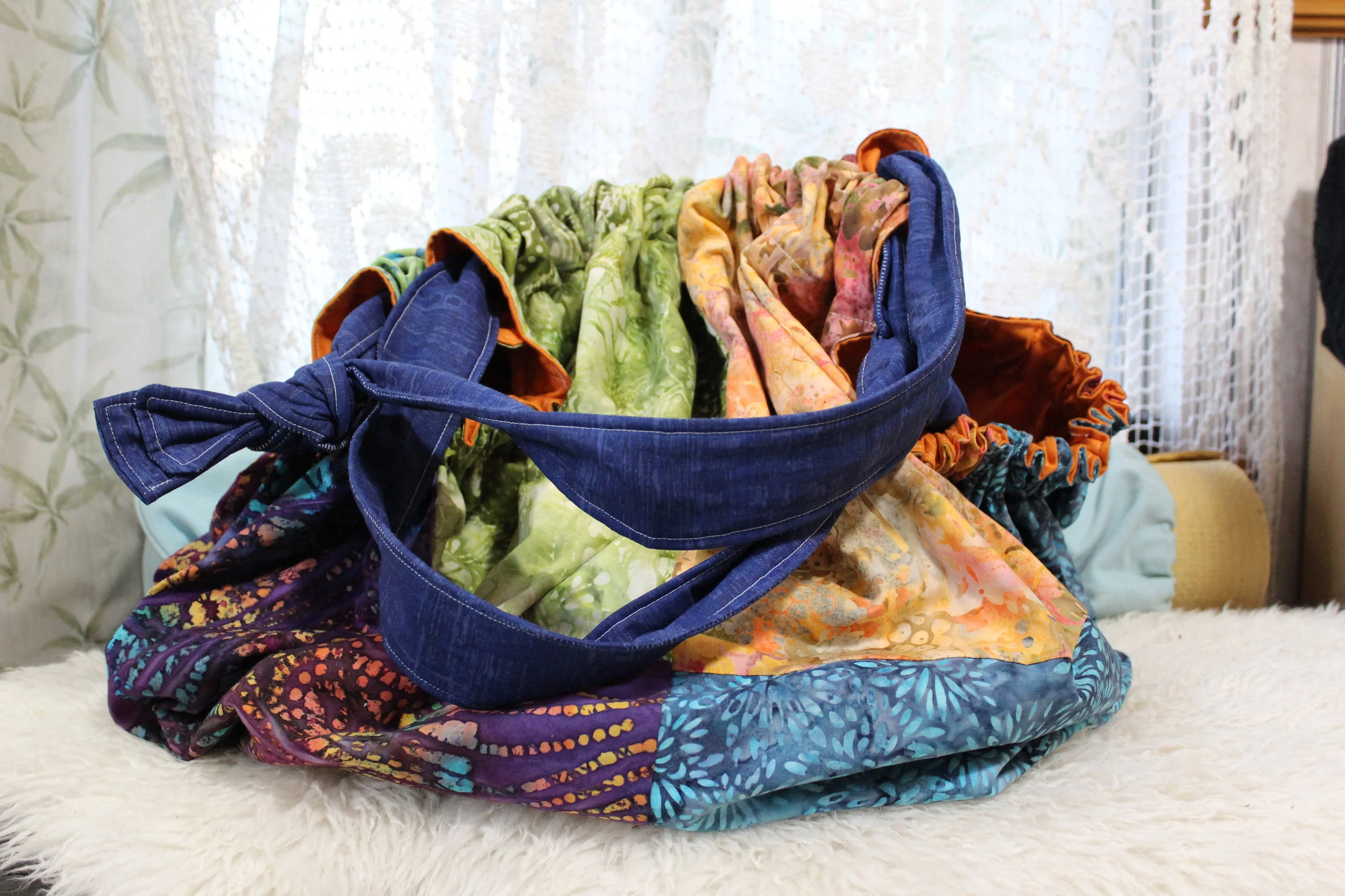 Instead of doing clothes this week, I decided to tackle this “fat quarter bag” that I came across and looked pretty cool on the picture, and I had these batik fabrics that were gifted to me a year ago for my batik hexie quilt project as well as a bolt of bright orange cotton fabric that I needed to find use for. I don’t need that much of each color for the hexies, because I want to mix it up, finding batik fat quarters as I go, so I knew I could use some for this project. This site, by the way, is a goldmine - it’s nothing but free sewing patterns! I didn’t realize the sheer size of this thing, even reading the cut list. Probably not a bad thing though. If I created a smaller bag that attaches to the handle so I don’t lose my things like keys, wallet, phone in there, I could see myself using this as an every day bag. Going grocery shopping, going to the library, etc. A bag to carry my reusable bags (for which I also have a pattern which look similar to the Baggu bags that I love and use). I wasn’t sure about the orange lining, but I think it goes really well with it! The only thing I did different is the pattern says to use the same material from the lining as the handles, but I had a remnant that I thought would be a better match.