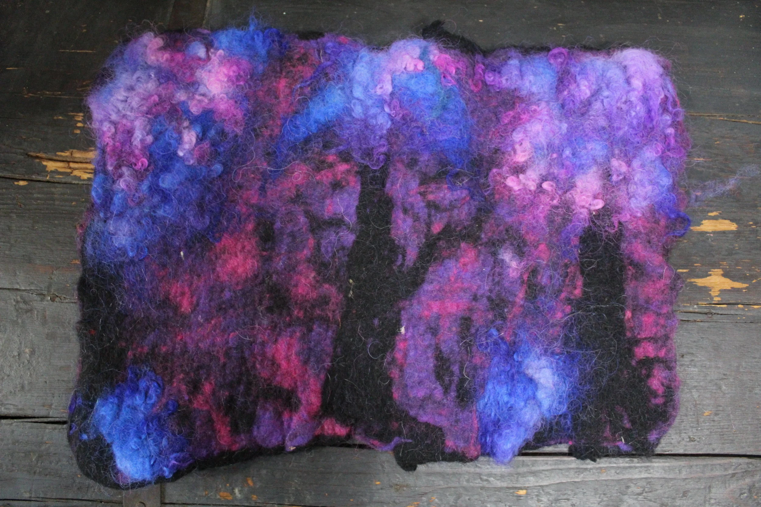 Since I was on a roll, I decided to knock out another cover - this one for a dear friend of mine. I’d promised a few of my friends planner covers, after which I’ll be filling up my shop with more of them. I want to try knocking out at least one or two per week. Normally I’m not a fan of wet felting (and I do want to try making one on the felting machine and see how that looks), because it does a number on my back, but since I got the boot mat it seems to help speed up the process and eliminate the need for rolling. One-to-two a week should give my back enough time to recuperate.