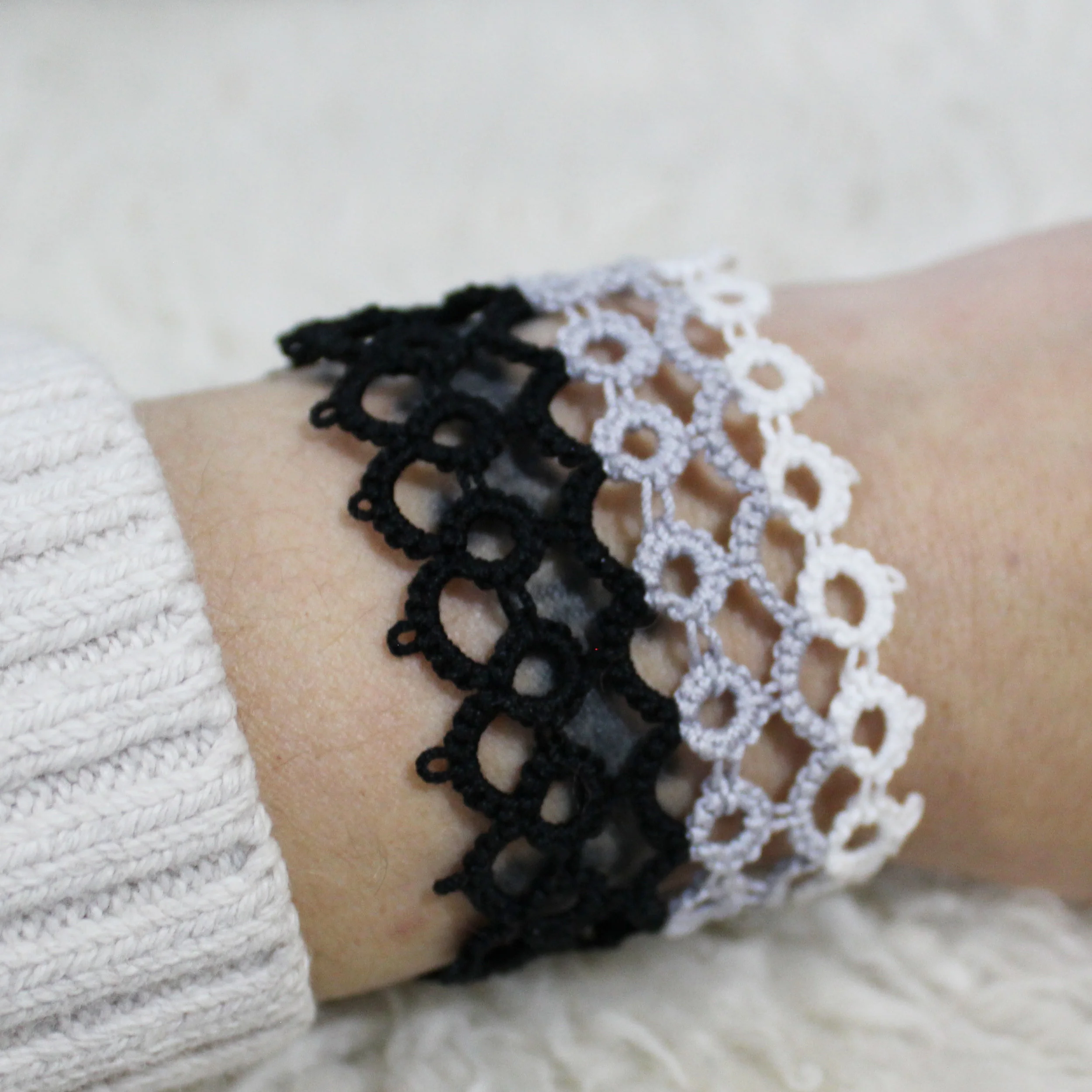 I finished off the last of the black row, and went to work on the final white chain stitch at the top. That ended up being a disaster - it kept twisting on me! I was going to try to start over by cutting off the stitches, but accidentally cut one of the picots in the process. Glued the picot back together and, well, I’m calling this one done. I did find a favorite way of sewing in the edges - rather than pushing the needle under the tight stitches I just weave them in between. It’s hardly noticeable, far less than the mangled mess left after fighting the needle through.
