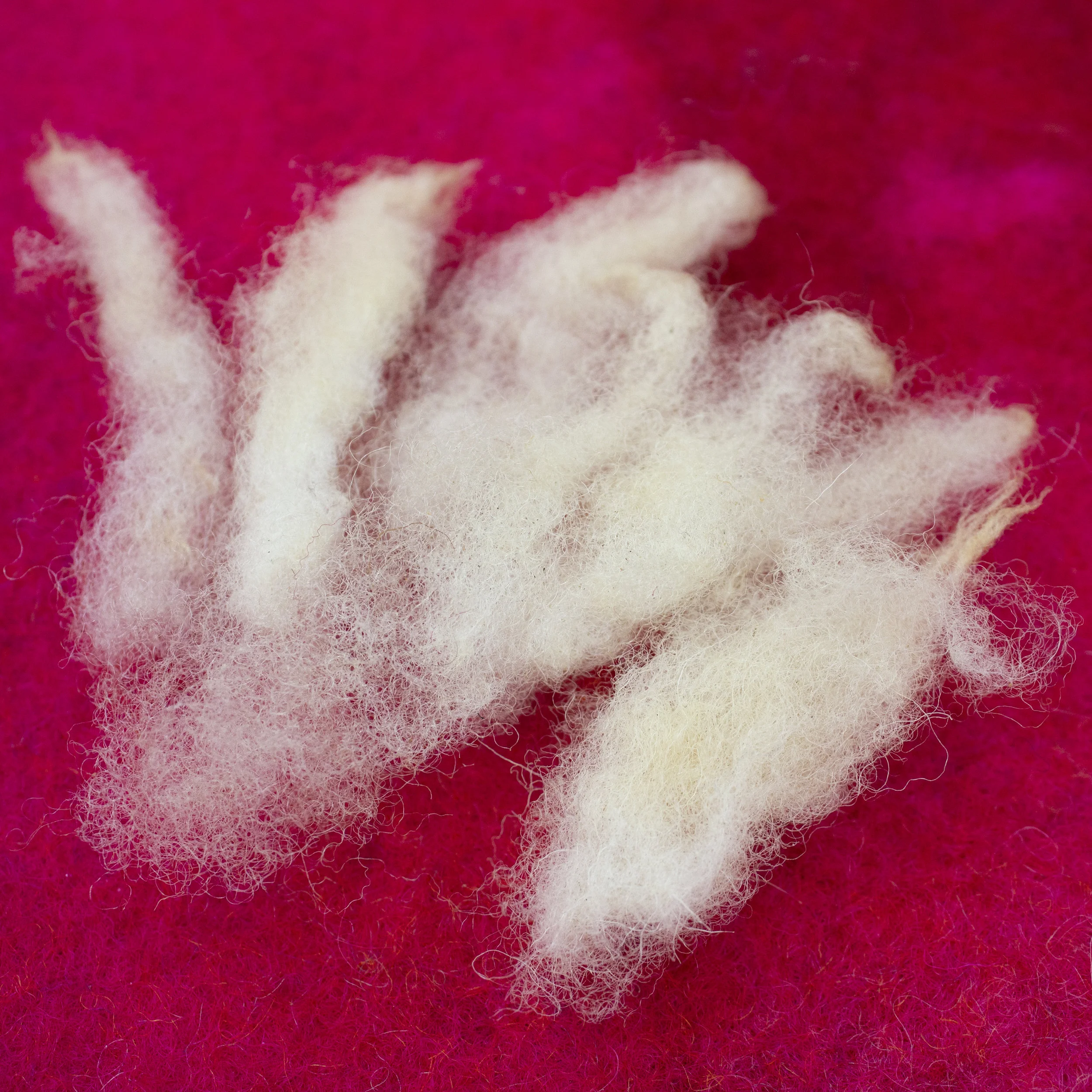Verdict: This fleece is excellent for needle felting with quick results. If you were to dedicate a little extra time to poking it with a 40 gauge, you would be able to achieve a very smooth finish with minimal-to-no hairiness. After the test, I spent a little extra time poking in one area with a 42 gauge and found that it’s effective at refining the finish.
